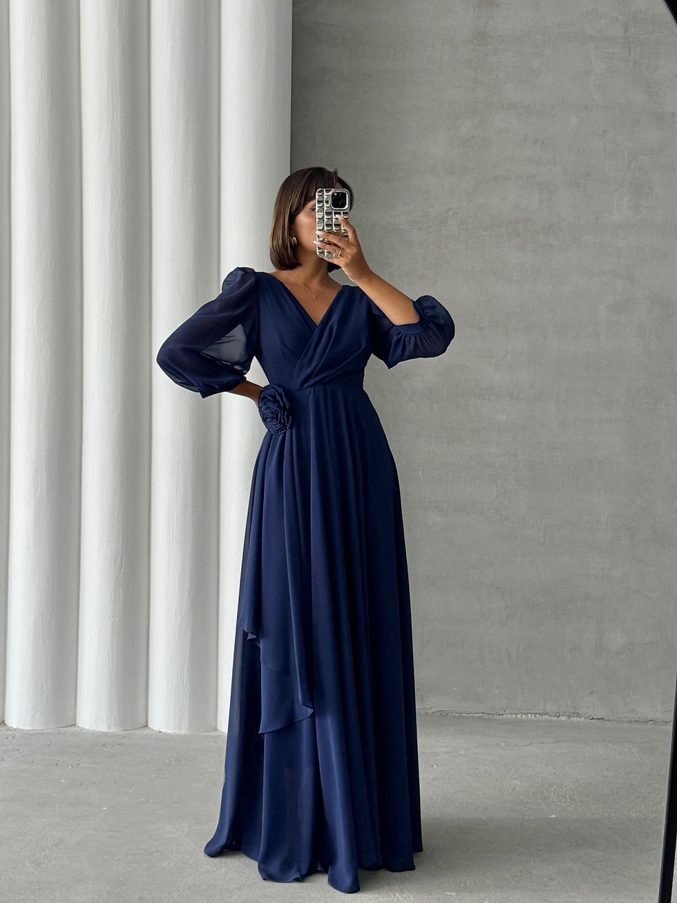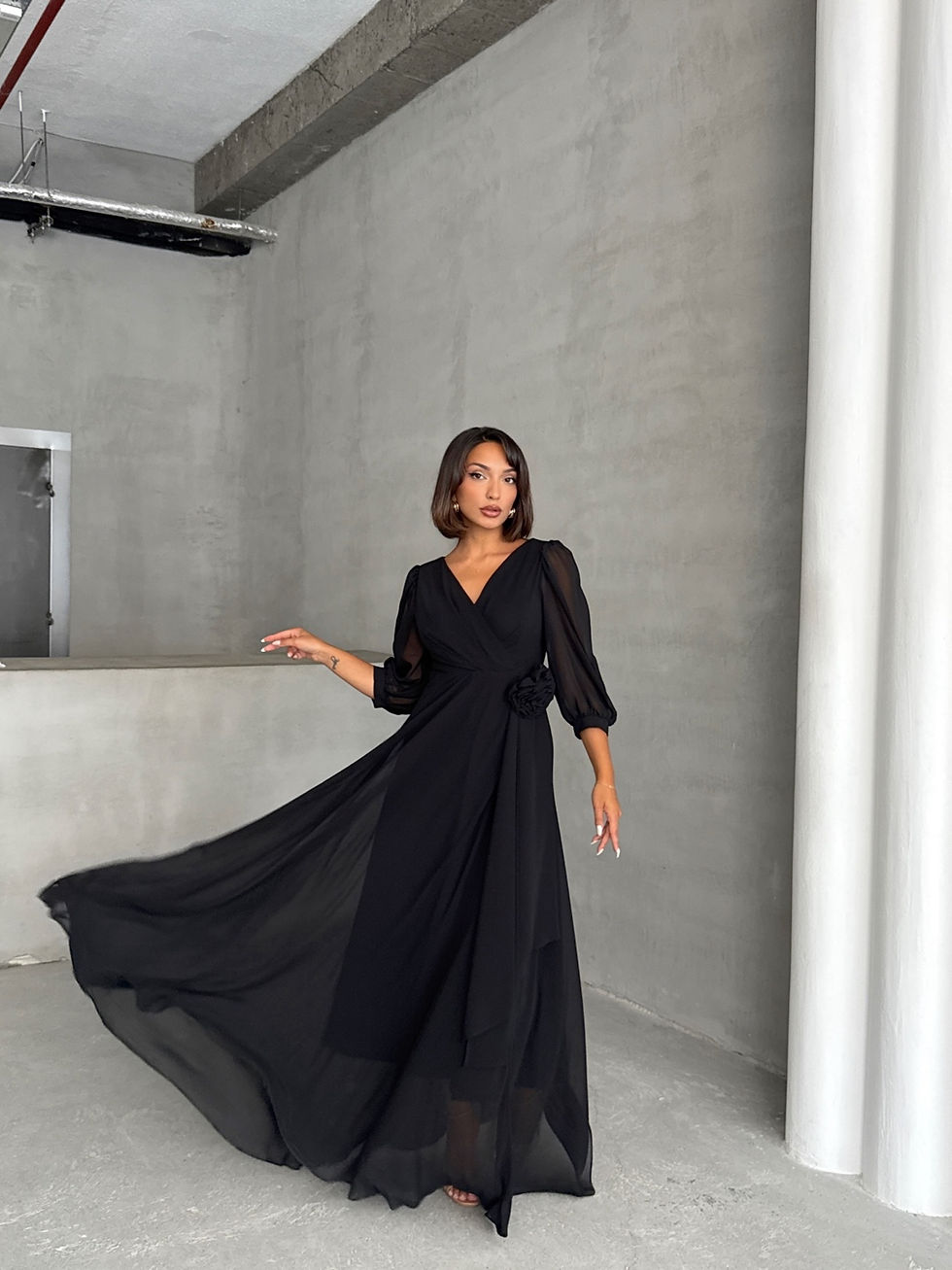 Önü Taş Detaylı Etek Ucu Tüylü Abiye